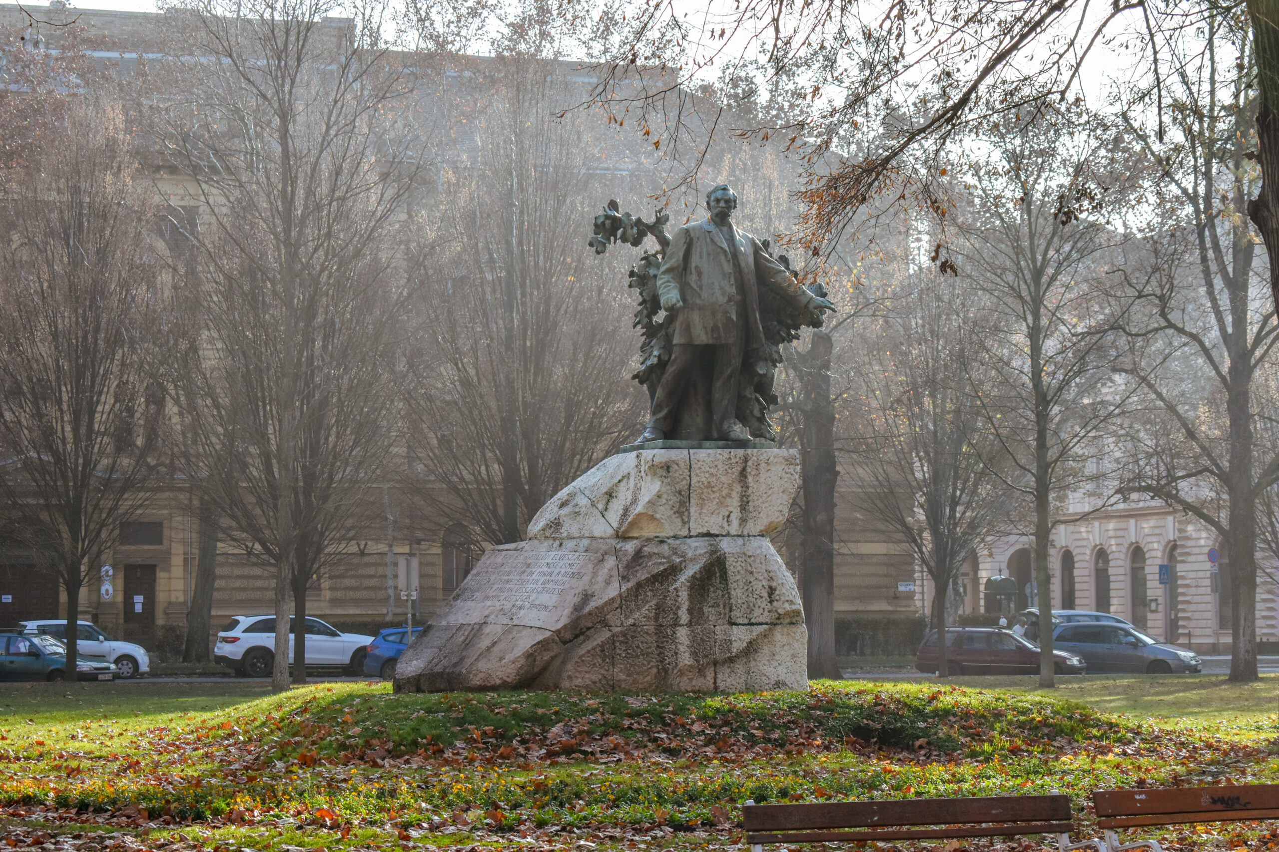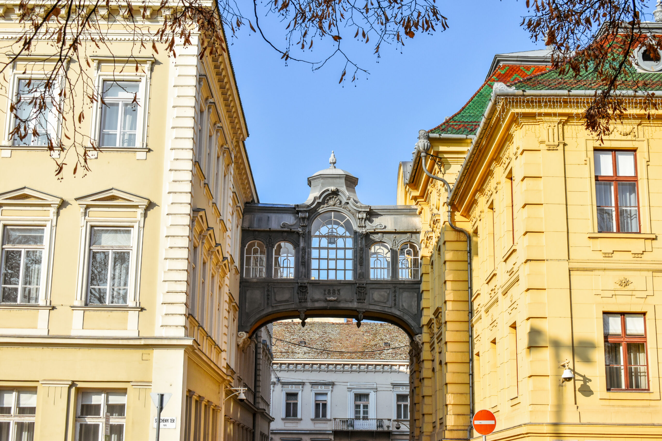 Nastavite pravo glavnom šetačkom ulicom Karasz utca i videćete Fekete kuću, Gal kuću, Ubger-Mejer kuću, spomenik „Ulična muzika“, pa potom i trg Klauzal ter gde je smešten spomenik Košut Lajoša, onda Milenijumsku fontanu i drugo. Na kraju ulice smešten je Szecheny trg, veliki park sa skulpturama gde se mogu videti i ostaci nekadašnjih gradskih zidina. Videćete tu i spomenike poznatih ljudi kao što su Szent Istvan, Deak Ferenc, kralj Bella i drugi. Na tom mestu smešteni i most Uzdaha, kao i kuće Balog haz i Berhaz.